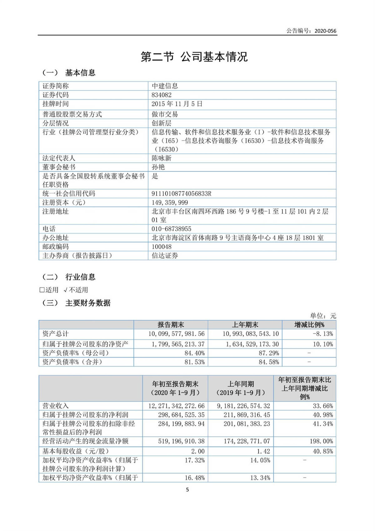 中建信息2020年第三季度報告