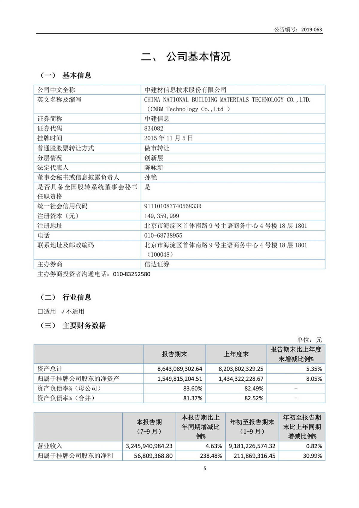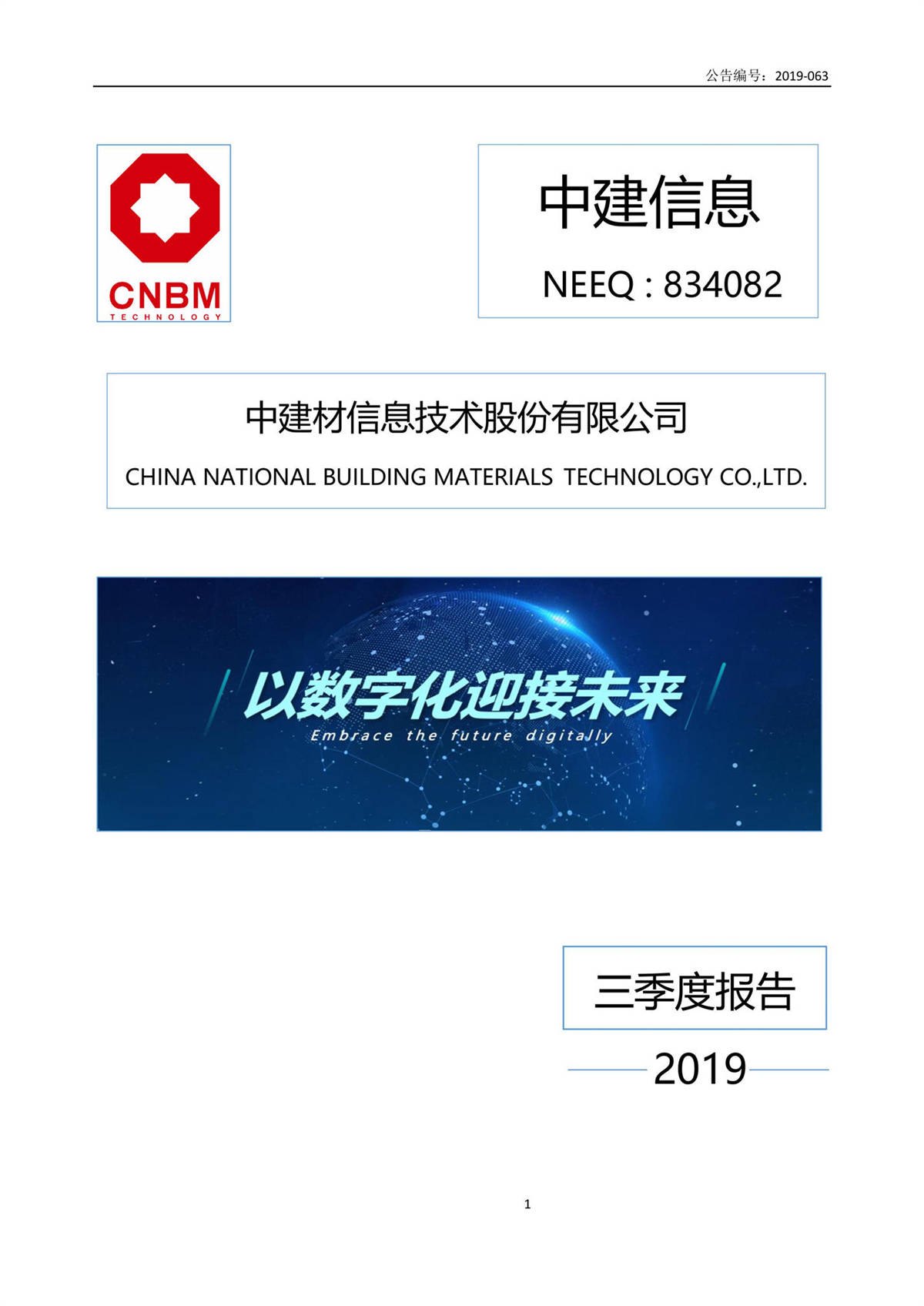 中建信息2019年第三季度報(bào)告