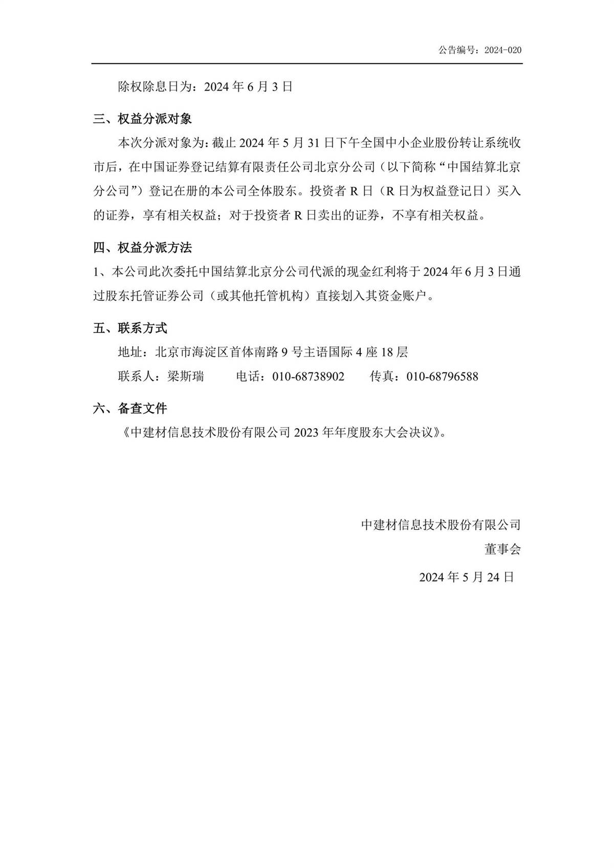 中建信息2023年年度權益分派實施公告
