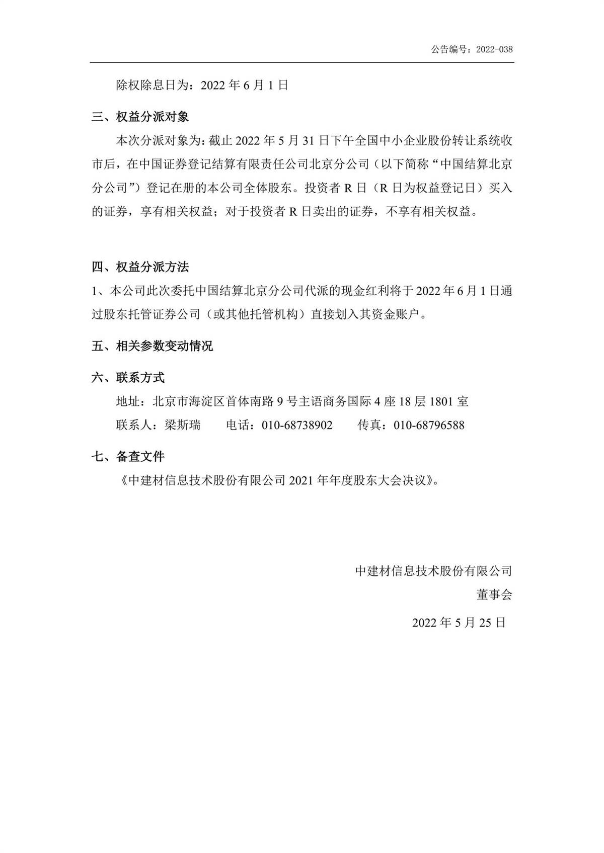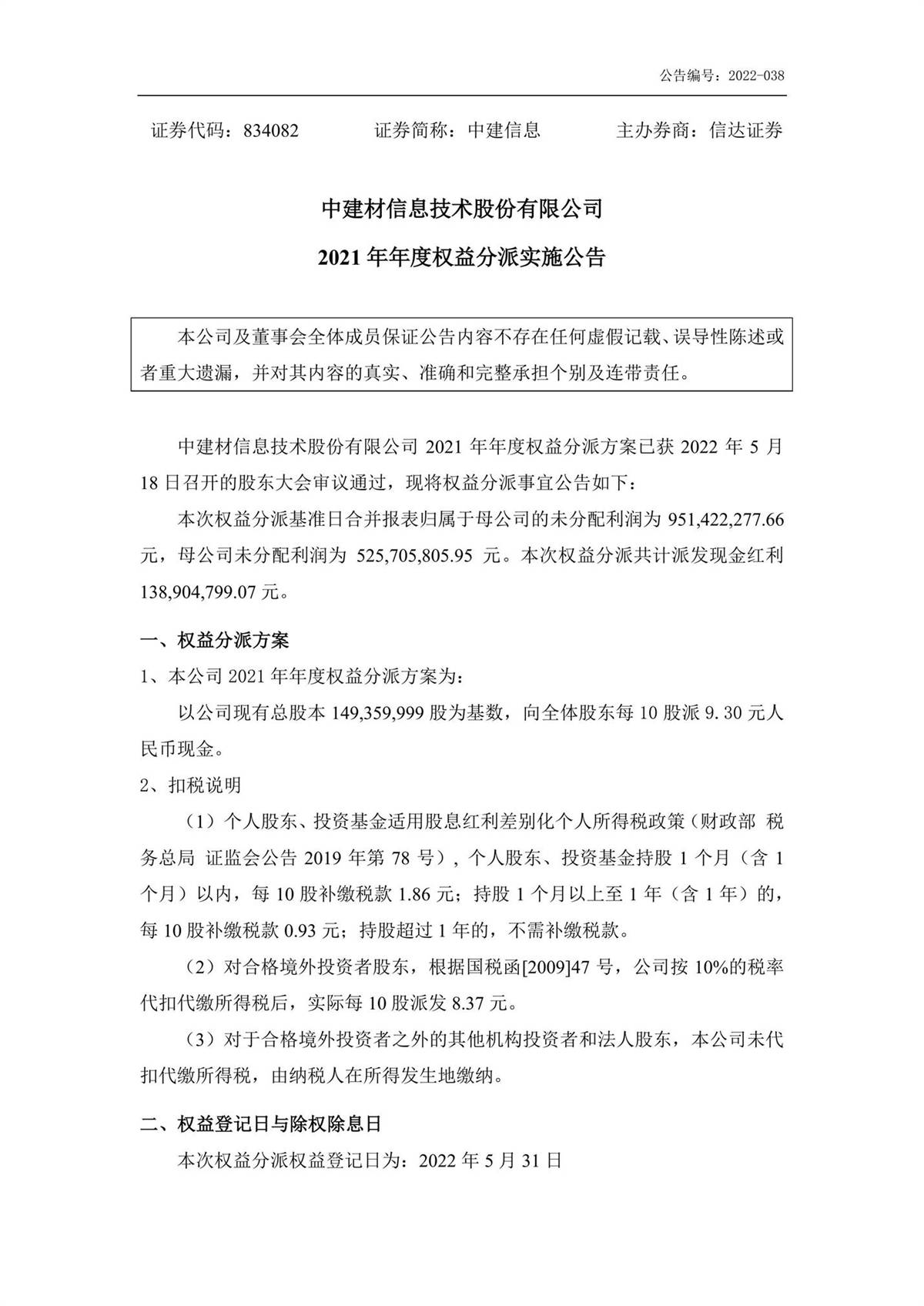 中建信息2021年年度權(quán)益分派實施公告